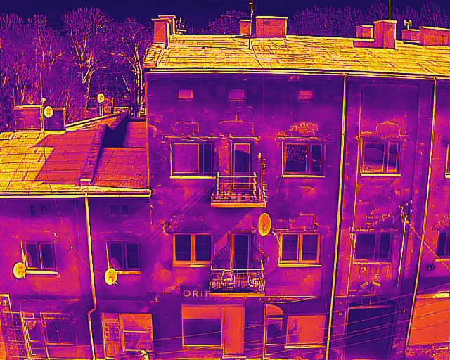 Wykonywano Pomiary termowizyjne przy warunkach atmosferycznych: temperatura od +-0°C do -3 °CPrędkość wiatru od 2,5 m/s do 4,4 m/s Wilgotność względna od 65% do 71% Badanie termowizyjne wykonywano po zachodzie słońca
