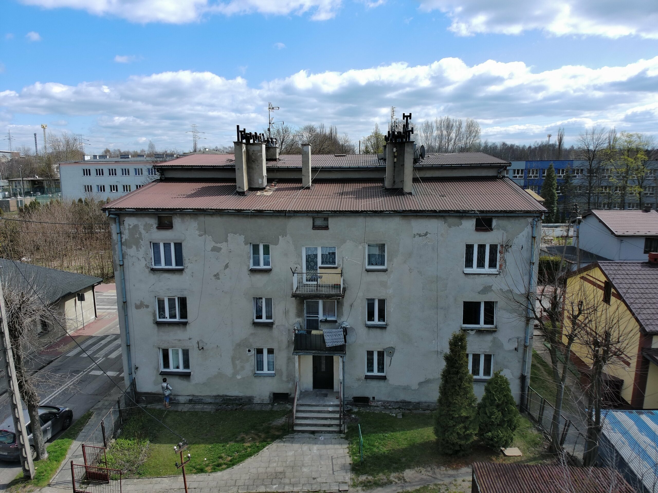 Budynek wybudowano w 1910 r., w technologii budowania tradycyjnej posiada ściany z cegły ceramicznej/bloczków kamiennych pokrytych tynkiem cementowo-wapiennym z licznymi ubytkami , ściany są nieocieplone, dach budynku składa się wyłącznie z odeskowania i papy, brak śladów izolacji termicznej. Okna plastikowe, wykończenie okien parapetami z licznymi ubytkami. Ponadto segmenty budynku posiadają w swoich zasobach łącznie 25 piecy pozaklasowych,